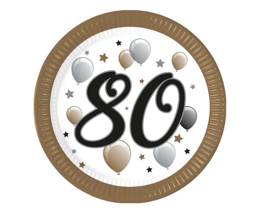 Talerzyki papierowe 80 urodziny FSC 23cm 8szt