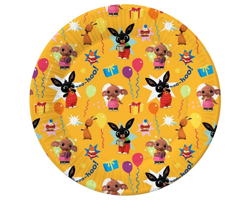 TALERZYKI PAPIEROWE BING Średnica: 18 cm Materiał: papier Kształt: okrągły Kolor: wielokolorowy Nadruk: bohaterowie bajki Bing W opakowaniu: 8 szt. Producent: Amscan