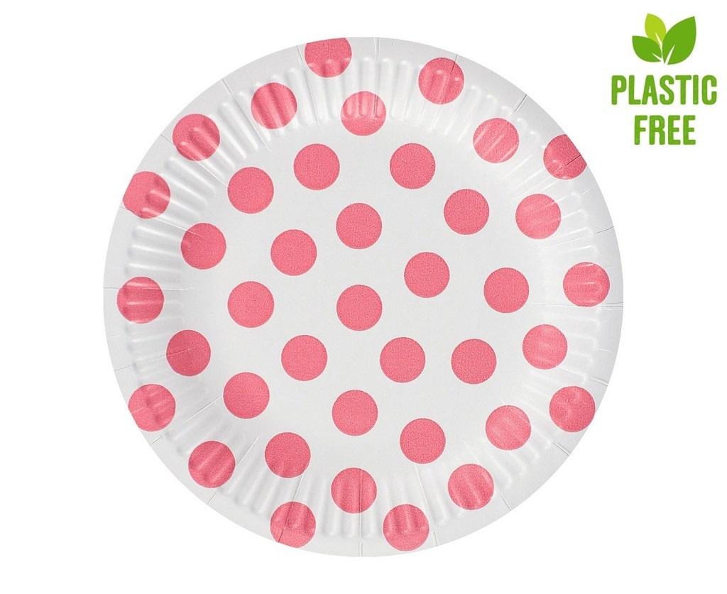 Talerzyki papierowe Groszki różowe 18cm 6szt