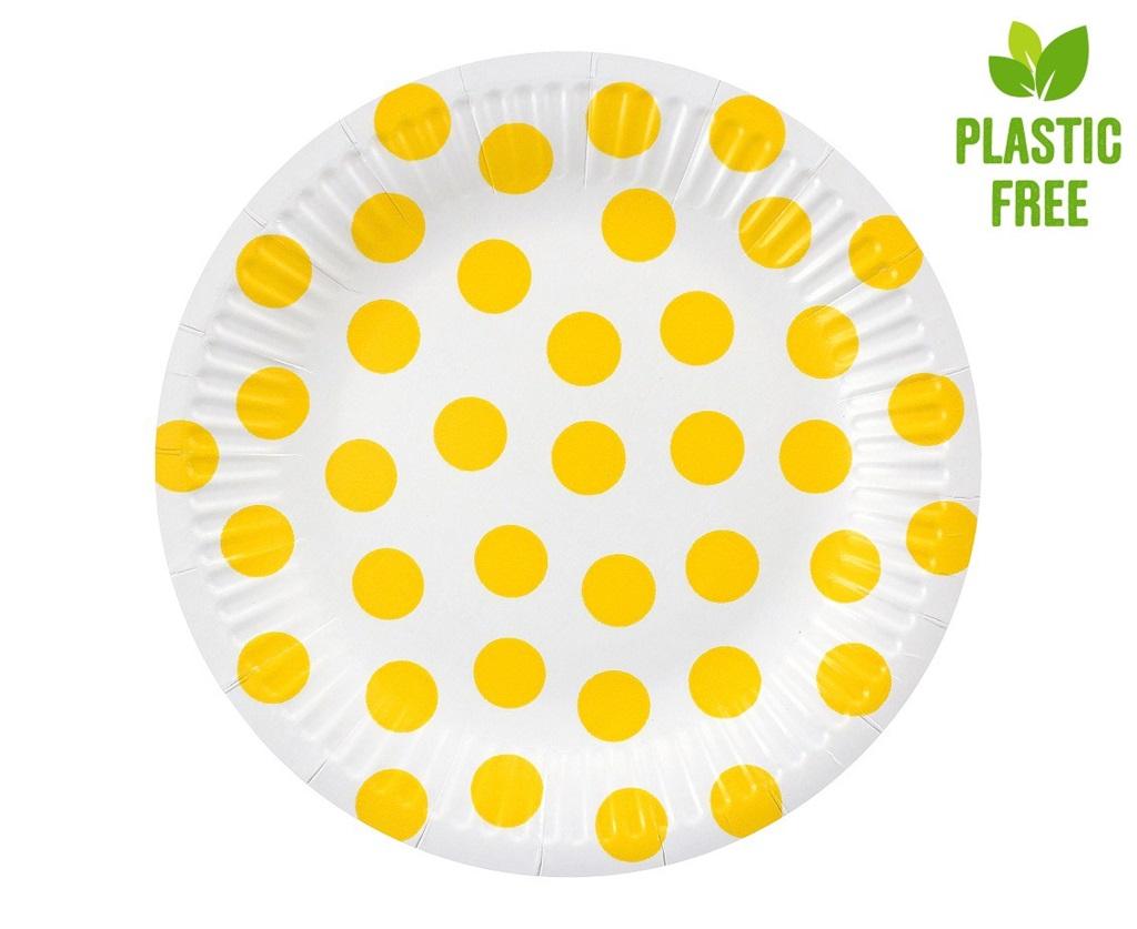 Talerzyki papierowe Groszki żółte 18cm 6szt.