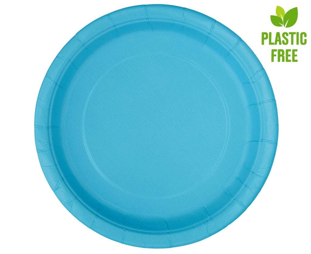 Talerzyki papierowe, niebieskie, 23 cm, 8 szt. (plastic-free) Średnica: 23 cm Materiał: 100% papier Kształt: okrągły Kolor: niebieski Nadruk: brak W opakowaniu: 8 szt. Producent: Unique Party Niebieskie talerze papierowe są świetne zarówno do ciepłych, jak i zimnych dań. Użyj ich na urodzinowym przyjęciu, grillu, pikniku i ciesz się ich zaletami. Talerzyki Unique są odpowiednio usztywnione, dzięki czemu gorące kiełbaski z grilla na pewno nie zsuną się na ziemię, gdy będziesz nieść je gościom :) Talerzyki nie zawierają ani grama plastiku. Jedz ze smakiem i dbaj o Naturę.