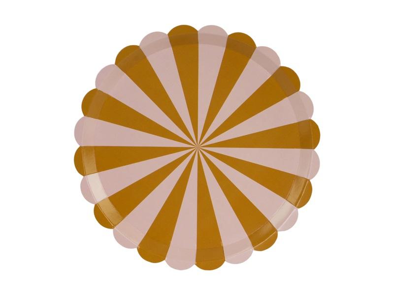 Talerzyki papierowe Paski w kolorze brązowo-różowym, średnica ok. 21 cm(1 op. / 6 szt.)