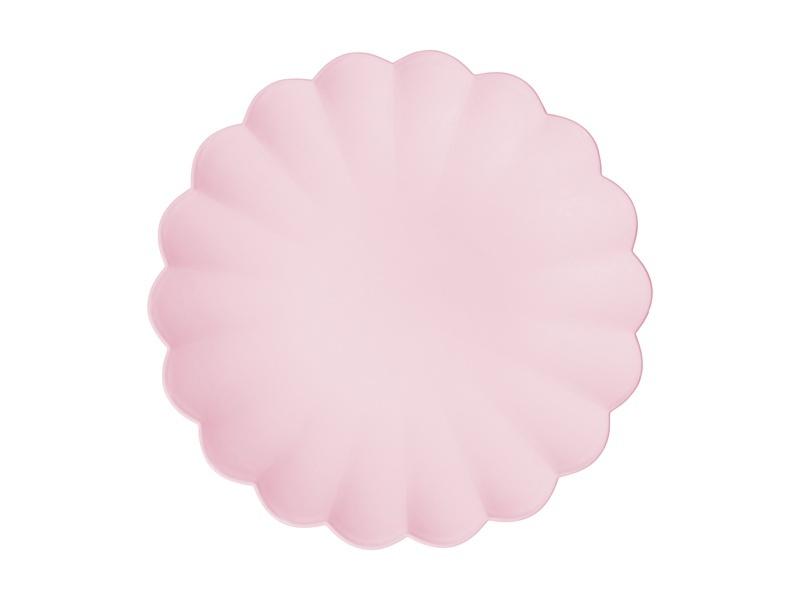 Talerzyki plastikowe Falbanka w kolorze różowym, wymiary ok. 22 x 22 cm. Produkt wielokrotnego użytku.(1 op. / 4 szt.)