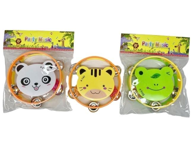 Rozpocznij przygodę swojego dziecka ze światem muzyki z wyjątkowym zestawem dwóch tamburynów. W komplecie znajdziesz jeden standardowy tamburyn z metalowymi janczarami oraz jeden instrument w wesołym kształcie zwierzątka takiego jak panda tygrys lub żabka. Obie wersje instrumentu wydają przyjemne dla ucha dźwięki i są łatwe do trzymania nawet dla najmniejszych rączek. Gra na tamburynie rozwija poczucie rytmu koordynację ruchową oraz zdolności słuchowe. Tamburyny wykonane są z trwałego i bezpiecznego dla dzieci tworzywa. To idealne narzędzia do domowej orkiestry urozmaicenia przyjęć urodzinowych lub pierwszych lekcji muzyki. Wybierz ulubione zwierzątko i cieszcie się wspólnym muzykowaniem.