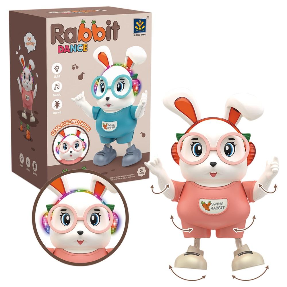 Zajączek w dwóch wersjach kolorystycznych koszulek. Zajączek spiewa i tańczy, świecą mu się słuchawki podczas tańca. Wysokość zajączka - 27.5 cm. Wymagane baterie - 3xAA (niedołączone).