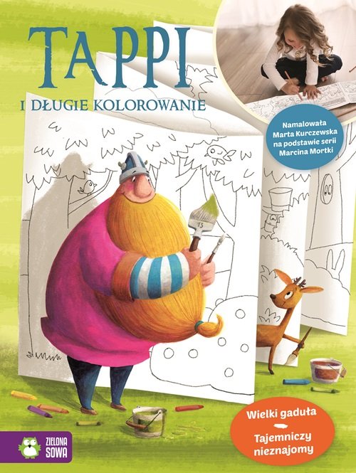 W Szepczącym Lesie zawsze dzieje się coś ekscytującego. Tym razem ktoś wykradł z niego wszystkie kolory! Weź do ręki kredki lub farby i przywróć barwy Tappiemu i jego przyjaciołom. Czeka Cię dłuuuuga zabawa! Wyjątkowe, dwustronne kolorowanki w formie harmonijki, wzbogacone krótkimi tekstami, dla wszystkich fanów książek o wikingu Tappim. W każdej kolorowance znajdują się dwie historyjki do pokolorowania, oparte na opowiadaniach z serii „Tappi i przyjaciele”. Dzieci mogą kolorować czarno-białe ilustracje według własnego uznania, kierując się wyobraźnią i tekstem czytanym przez rodzica.