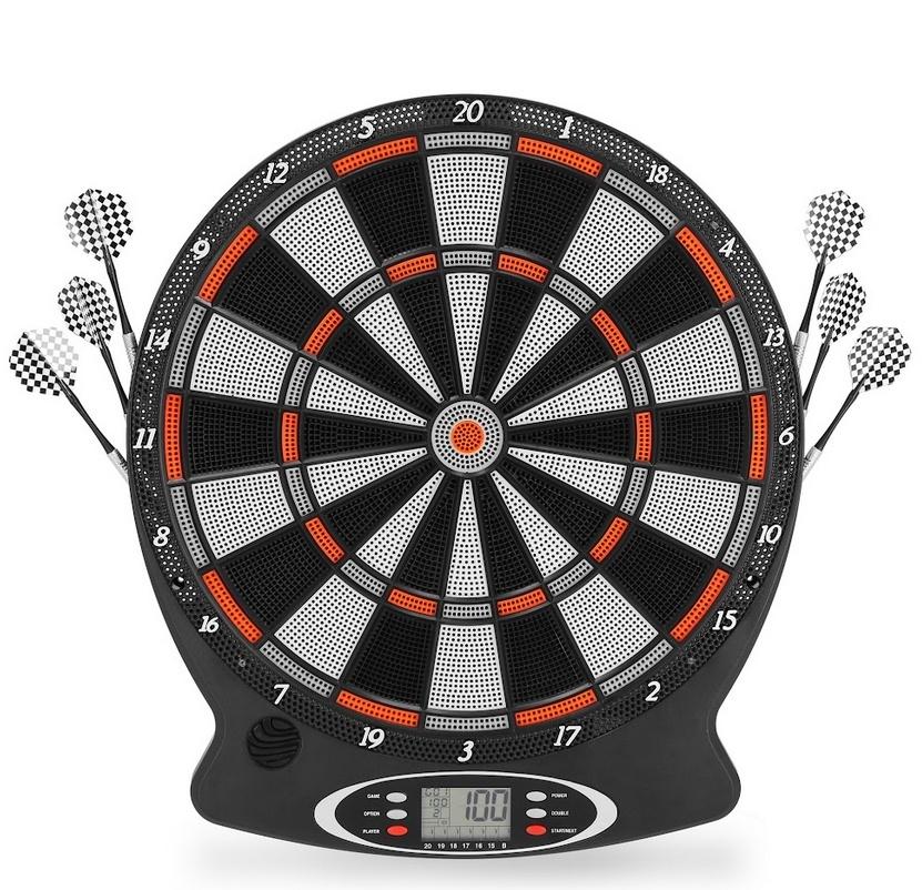 Tarcza elektroniczna do darta wyposażona w czytelny wyświetlacz LCD oraz sygnalizację dźwiękową. Umożliwia grę aż w 152 wariantach, dla 1 - 8 osób. W zestawie z 6 rzutkami z wymiennymi końcówkami. Wykonana z wytrzymałych materiałów, z możliwością zawieszenia na ścianie lub postawieniu na stojaku.