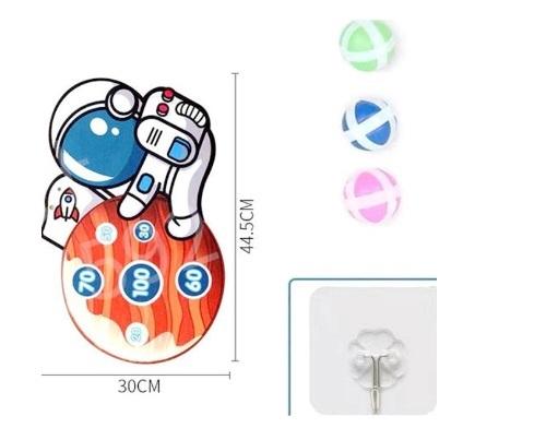 Zabawka tarcza na rzep z kosmicznym motywem w kształcie astronauty na planecie wraz z 3 piłkami i haczykiem do powieszenia. Stań do walki i sprawdź ile punktów dziś zdobędziesz Zabawka pomaga rozwijać celność i sprawność u dzieci. Produkt zapakowany w przezroczysty worek. Podane wymiary są wymiarami opakowania.