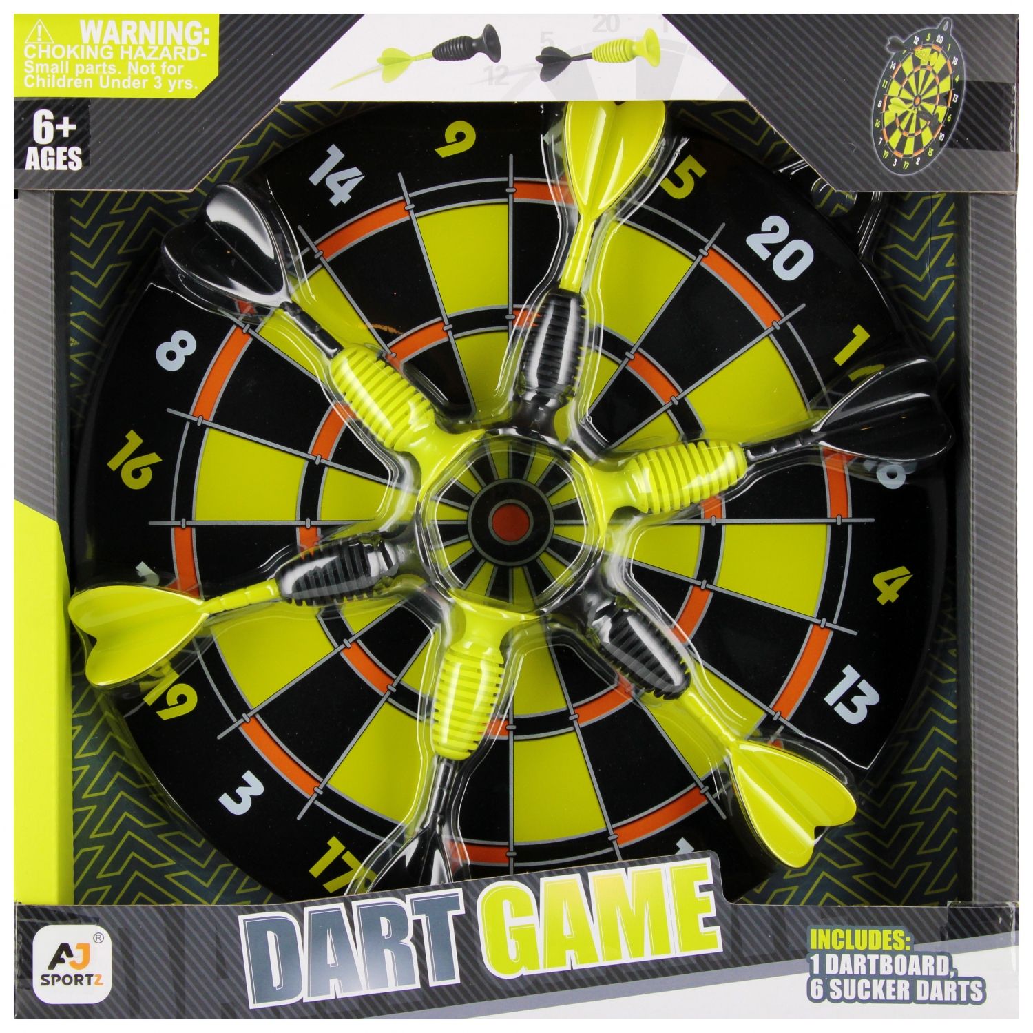 W zestawie znajduje się tarcza oraz sześć rzutek na przyssawkę.