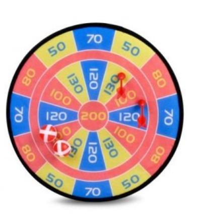 W ZESTAWIE: TARCZA DO RZUTEK O ŚREDNICY 36 CM., 2 RZUTKI, 2 PIŁECZKI, 3+