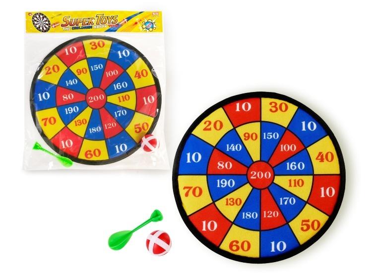 W zestawie: tarcza, piłka na rzep, strzałka na rzep, Pozostałe informacje: śr. tarczy 28 cm, wym. opak. folia 29,5 x 33,5 x 4 cm, 3+