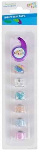 W opakowaniu znajduje się 6 taśm brokatowych o szerokości 12 mm oraz gilotynka. Zestaw wykonany z plastiku oraz tworzywa sztucznego.