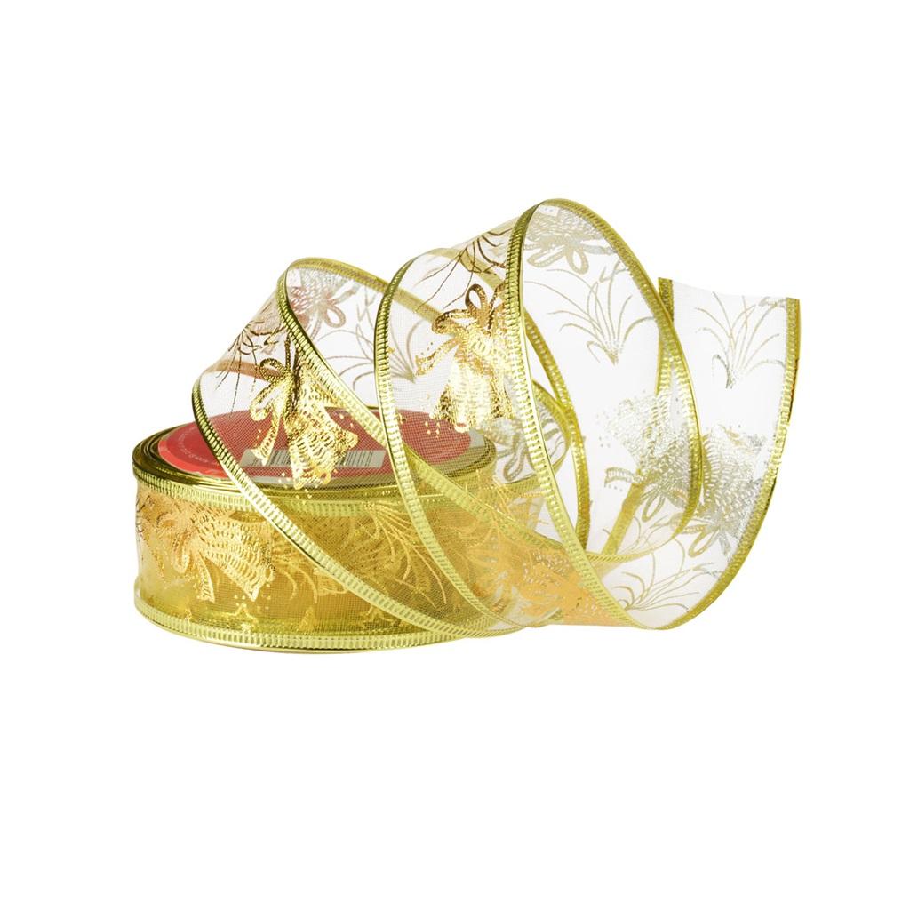 Taśma dekoracyjna na szpuli w kolorze złotym to element dekoracyjny o wymiarze: 3,8x270 cm.