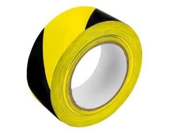 • taśma czarno-żółta do wyznaczania stref potencjalnego zagrożenia, takich jak miejsca narażone na ryzyko potknięcia się lub upadku, obszary wokół maszyn i urządzeń w ruchu, a także przeszkody na podłodze, takie jak kable czy rury