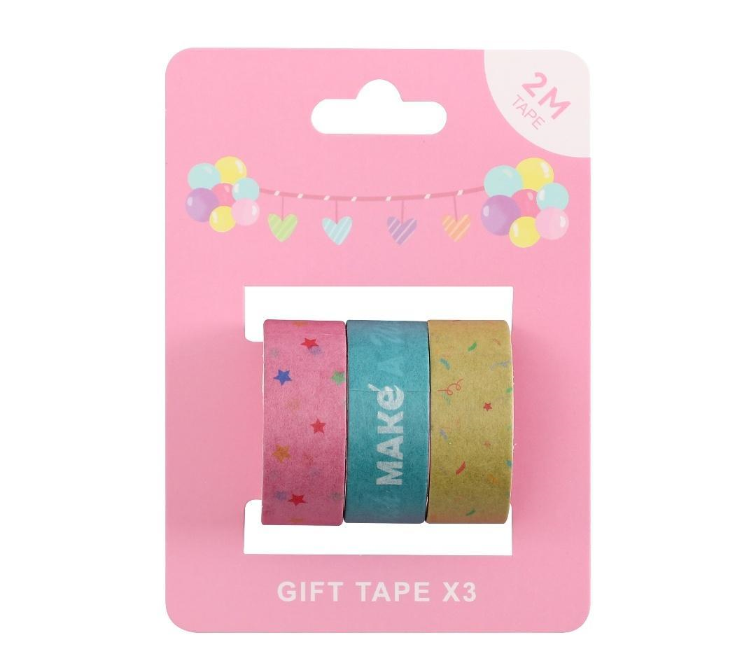 Zestaw 3 ozdobnych taśm papierowych (3x2m) do pakowania prezentów. Idealne do kreatywnego dekorowania, scrapbookingu i personalizacji upominków.