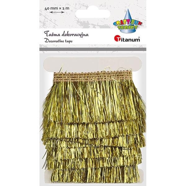 Opakowanie Taśma z frędzlami plastikowymi 40mm 1m złota