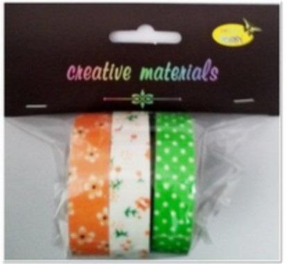 Taśmy materiałowe samoprzylepne 3 szt. miks wzorów. . Zestaw 3 ozdobnych taśm materiałowych samoprzylepnych długości 4 mb. Taśmy dają się odkleić od podłoża bez niszczenia go.