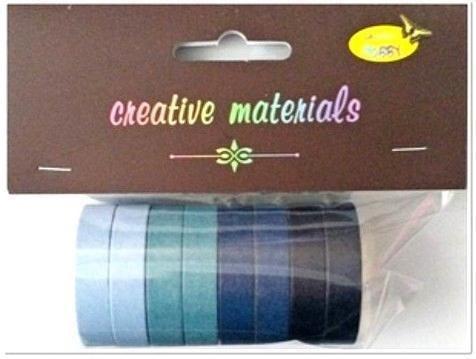 Taśmy samoprzylepne papierowe WASHI 8 szt. tonacja błękitu . Zestaw 8 ozdobnych taśm samoprzylepnych wykonanych z mocnego japońskiego papieru długości 3 mb. I szerokości 0,9 cm. Taśmy dają się odkleić od podłoża bez niszczenia go.