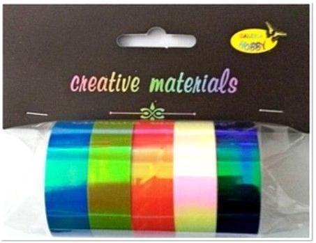 Taśmy samoprzylepne papierowe zestaw 5 szt. szer. 15 mm. (1) Kolory : opalizujące . Zestaw ozdobnych taśm samoprzylepnych w eleganckim opakowaniu z eurozawieszką.