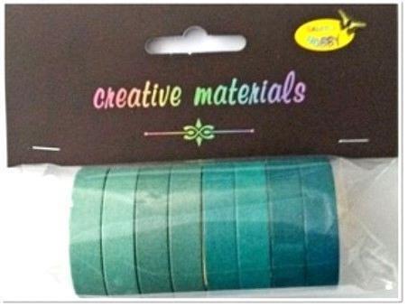 Taśmy samoprzylepne papierowe WASHI 8 szt. tonacja zieleni . Zestaw 8 ozdobnych taśm samoprzylepnych wykonanych z mocnego japońskiego papieru długości 3 mb. I szerokości 0,9 cm. Taśmy dają się odkleić od podłoża bez niszczenia go.