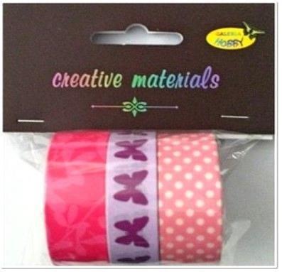 Taśmy samoprzylepne papierowe WASHI 3 szt. miks wzorów. . Zestaw 3 ozdobnych taśm samoprzylepnych wykonanych z mocnego japońskiego papieru długości 5 mb. Taśmy dają się odkleić od podłoża bez niszczenia go.