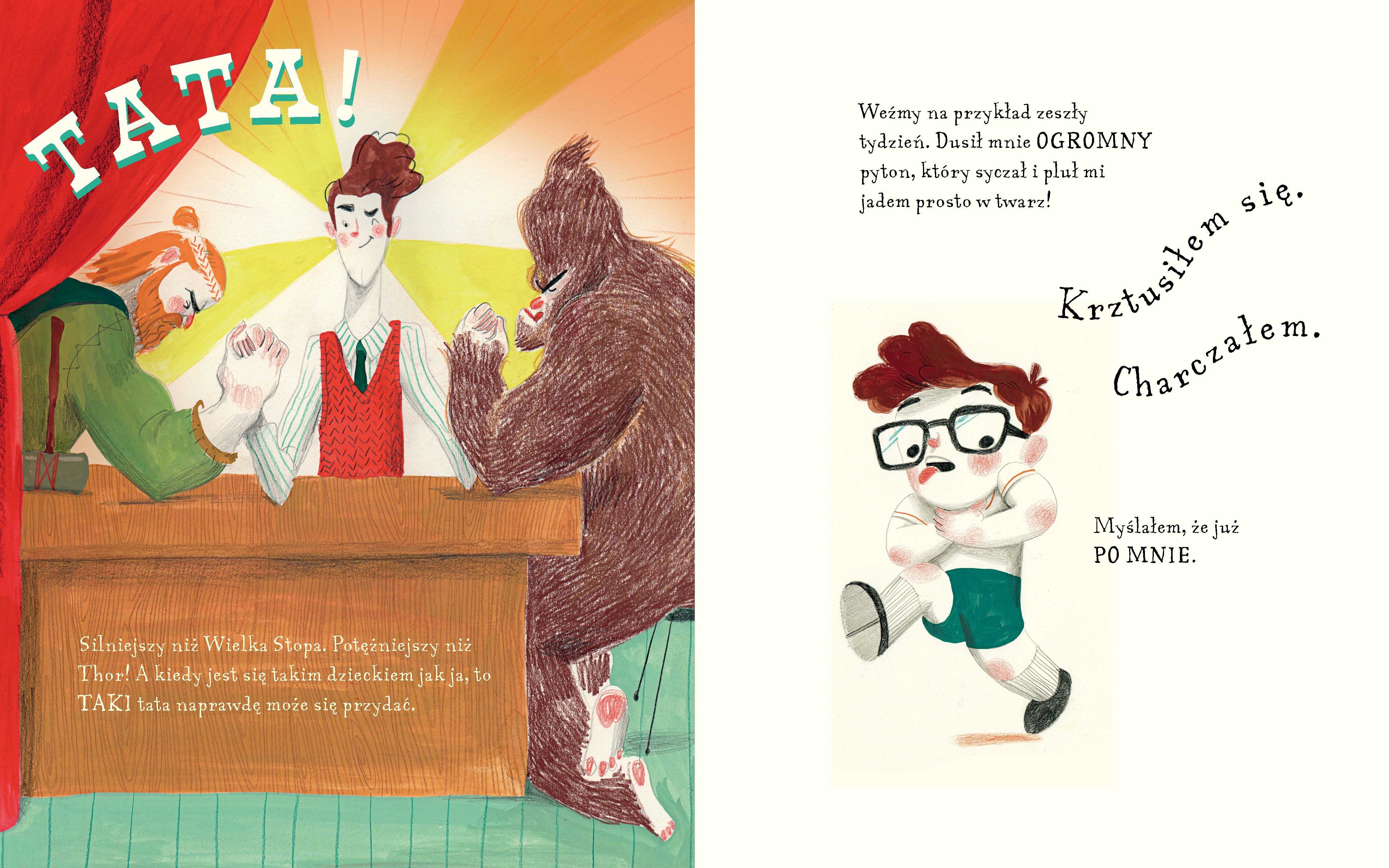 Bądź bohaterem dla swojego dziecka! Silniejszy niż Wielka Stopa, potężniejszy niż Thor, mądrzejszy niż Einstein… Szast-prast i już – w mig robi najlepsze spaghetti z czekoladowymi drażami. Zmienia pieluchy, bo po prostu to lubi, potrafi też liczyć do nieskończoności. I to dwa razy! Tata. Najwspanialszy człowiek pod słońcem! Zabawna i niezwykle wzruszająca opowieść o miłości, która jest w stanie zmienić zwykłego rodzica w wielkiego bohatera. Na końcu książki mały czytelnik znajdzie niespodziankę – specjalne miejsce na opowieść o jego, wyjątkowym tacie. Książkę zilustrował Dani Torrent, laureat wielu wyróżnień, w tym nagród fundacji Fita z Girony i Manuel António da Mota z Portugalii, doceniony również przez amerykańskie Stowarzyszenie Ilustratorów (SOI). Święto szalonej wyobraźni pewnego ojca. „Publisher’s Weekly” Czytelnicy zamarzą, by być jak ten tata i jego syn – marzyć o wielkich rzeczach i je osiągać. „Kirkus” Fragment książki: A gdy po kąpieli i umyciu zębów chcę się do niego przytulić w łóżku, tata zawsze się zgadza. I wtedy, tuż przed zaśnięciem, mówi do mnie to, co lubię najbardziej: – Śpij spokojnie, mały. I pamiętaj, żeby mieć wielkie marzenia, bo możesz osiągnąć wszystko. Z takim tatą jak mój chyba naprawdę mogę. Ale wiesz, o czym marzę najbardziej? Żeby być takim jak on. O autorze: Mifflin Lowe – pisarz, autor tekstów piosenek, muzyk. Opublikował dwanaście książek, które sprzedały się w ponad trzystu tysiącach egzemplarzy, tłumaczony na kilka języków. Autor między innymi: The True West, The Cuddle Book, zbiorów wierszy dla dzieci: Beasts by the Bunches i Z-Z-Z-Z-Z-Z. A Bedtime Story oraz książek dla dorosłych: The Cheapskate's Handbook, I Hate Fun oraz How To Be A Celebrity. Powyższy opis pochodzi od wydawcy.