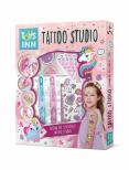 Tattoo Studio Unicorn - zestaw zawiera 2 markery do tatuażu, brokat w 2 kolorach, pędzelek, samoprzylepne kryształki, kolorowe tatuaże, szablony.