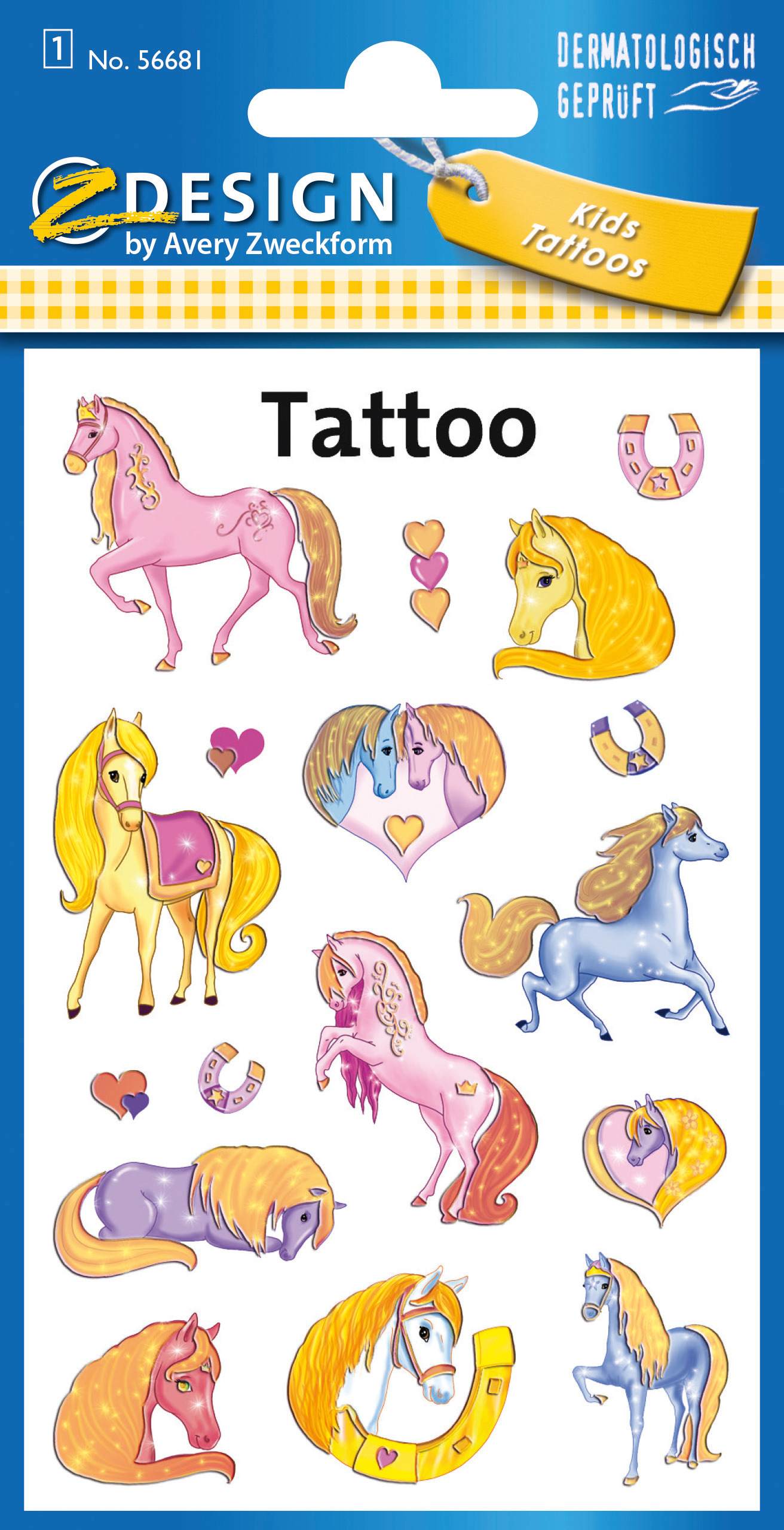 Dzieciaki uwielbiają zabawę kolorami. Takie spędzanie czasu wyzwala kreatywność i daje nieograniczone możliwości. Nic więc dziwnego w tym, że dużą popularnością wśród najmłodszych cieszą się tatuaże. Ozdabianie własnego ciała to wielka frajda, a jednocześnie możliwość przeistoczenia się w morskiego pirata, chińskiego wojownika lub magiczną księżniczkę... Na przeciw tym oczekiwaniom wyszła nowa seria tatuaży firmy AVERY z serii Z-Design. Każdy komplet to nawet 20 różnokolorowych, a także połyskujących w ciemności tatuaży! Dodatkowym atutem jest także łatwość nanoszenia ozdoby na ciało (wystarczy jedynie woda!) oraz możliwość szybkiego zmycia tatuażu za pomocą odrobiny oleju spożywczego. Tatuaże AVERY są całkowicie bezpieczne dla dziecka, nie ścierają się szybko i są wodoodporne. Sprawiają wrażenie profesjonalnie wykonanego tatuażu, który dodatkowo połyskuje w ciemności! Komplet Tatuaże - Błyszczące Kucyki zawiera 17 uroczych wzorów, które mogą być idealnym prezentem dla bliskiej przyjaciółki. Zawartość: - blister, zawierający 17 wzorów tatuaży z motywem kucyków. Wymiary blistra: 7,6cm X 12cm