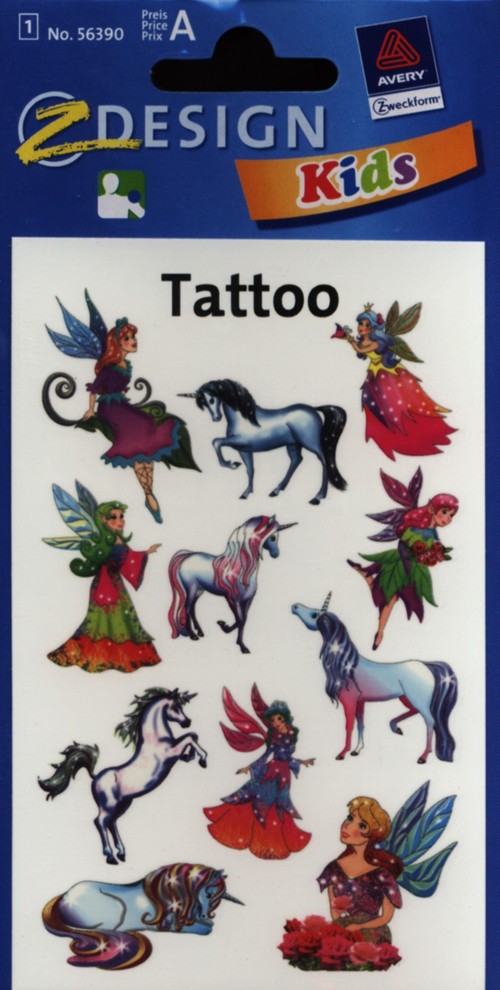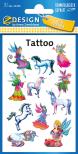 Tatuaże wodoodporne, łatwo usuwalne. Wytnij tatuaż, usuń podkład, przyciśnij kolorową stroną do skóry. Zwilż tatuaż. Ostrożnie ściągnij papier. Osusz tatuaż. Aby o usunąć, użyj taśmy klejącej lub olejku do skóry. Dla dzieci w wieku od 3 lat