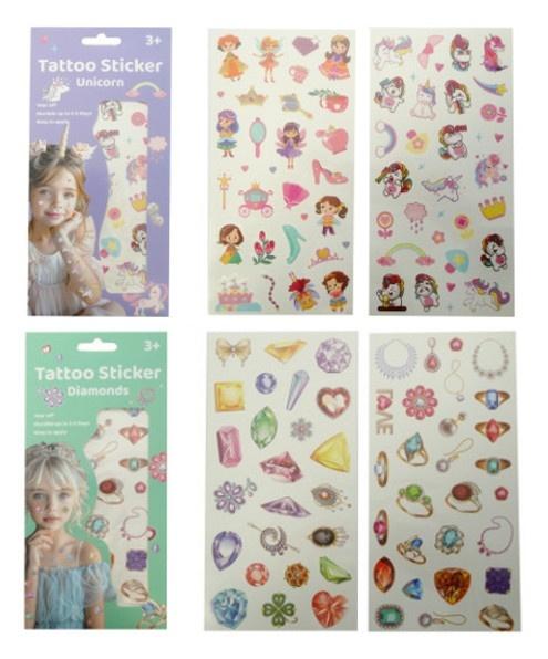Tatuaże dla dzieci to tymczasowe, bezpieczne ozdoby naklejane na skórę. Są popularne na urodzinach. Te kolorowe tatuaże mają różne motywy: biżuterii i jednorożców. Produkt występuje w kilku wersjach kolorystycznych, wybierany losowo. Cena dotyczy jednej sztuki. Podane wymiary są wymiarami opakowania.
