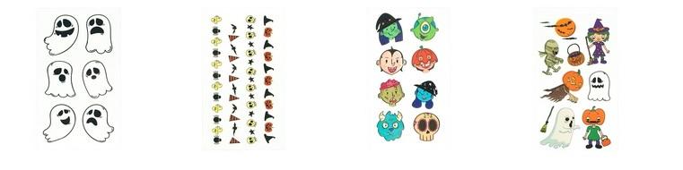 Tatuaże świecące w ciemności z halloweenowymi wzorami. Zabawny element ozdobny na Halloween. Tatuaże są tymczasowe, zmywalne. Dostępne różne wzory.
