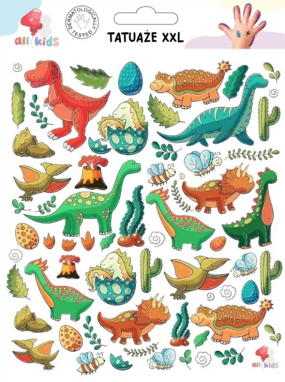 Opakowanie Tatuaże zmywalne dla dzieci Dinozaury XXL