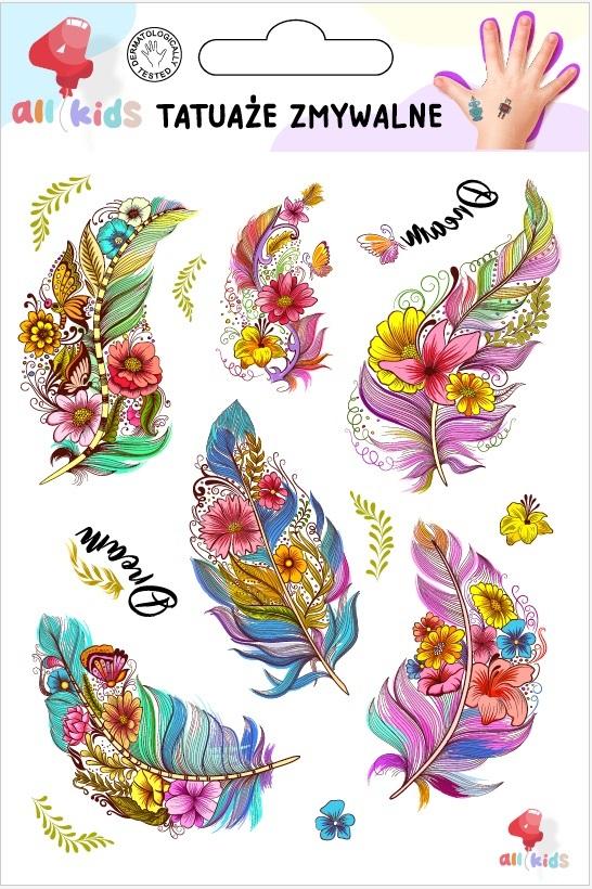 Tatuaże zmywalne dla dzieci Pióra i kwiaty