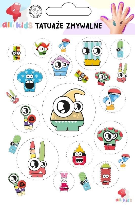 Opakowanie Tatuaże zmywalne dla dzieci Stwory Potwory