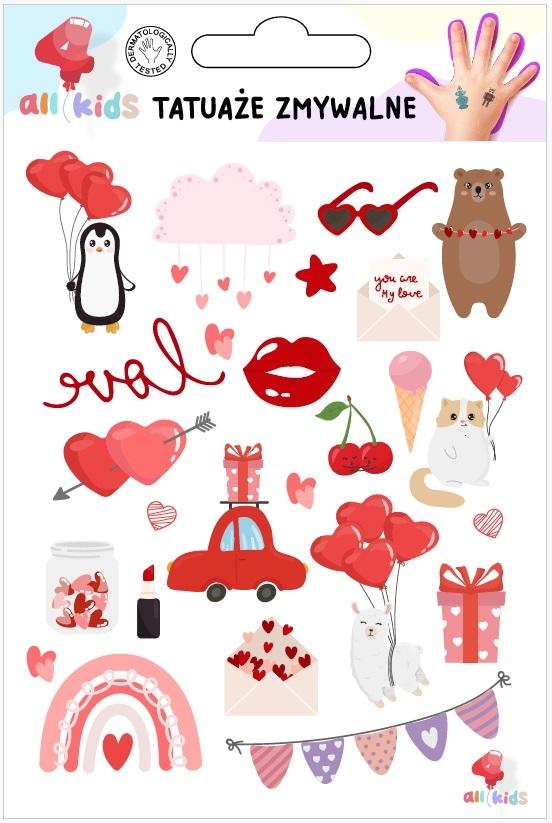 Opakowanie Tatuaże zmywalne dla dzieci Walentynki
