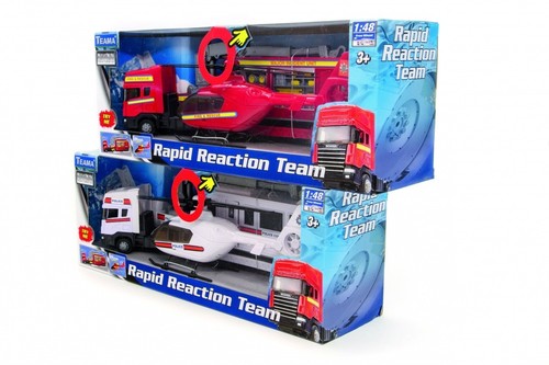 Pojazdy wykonany z wysokiej jakości tworzywa sztucznego i metalu. Modele ciężarówki i helikoptera wykonane są w skali 1:48. Realistyczny wygląd i wysoka jakość wykonania sprawią wiele radości kolekcjonerom i miłośnikom motoryzacji. Zabawka zapakowana w estetyczne opakowanie typu „window-box”. Zalecany wiek dziecka 3+.