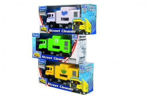 Wykonany z plastiku i metalu modela samochodu - zamiatarki Scania w skali 1:48 Zabawka dla dzieci w wieku od 3 lat.