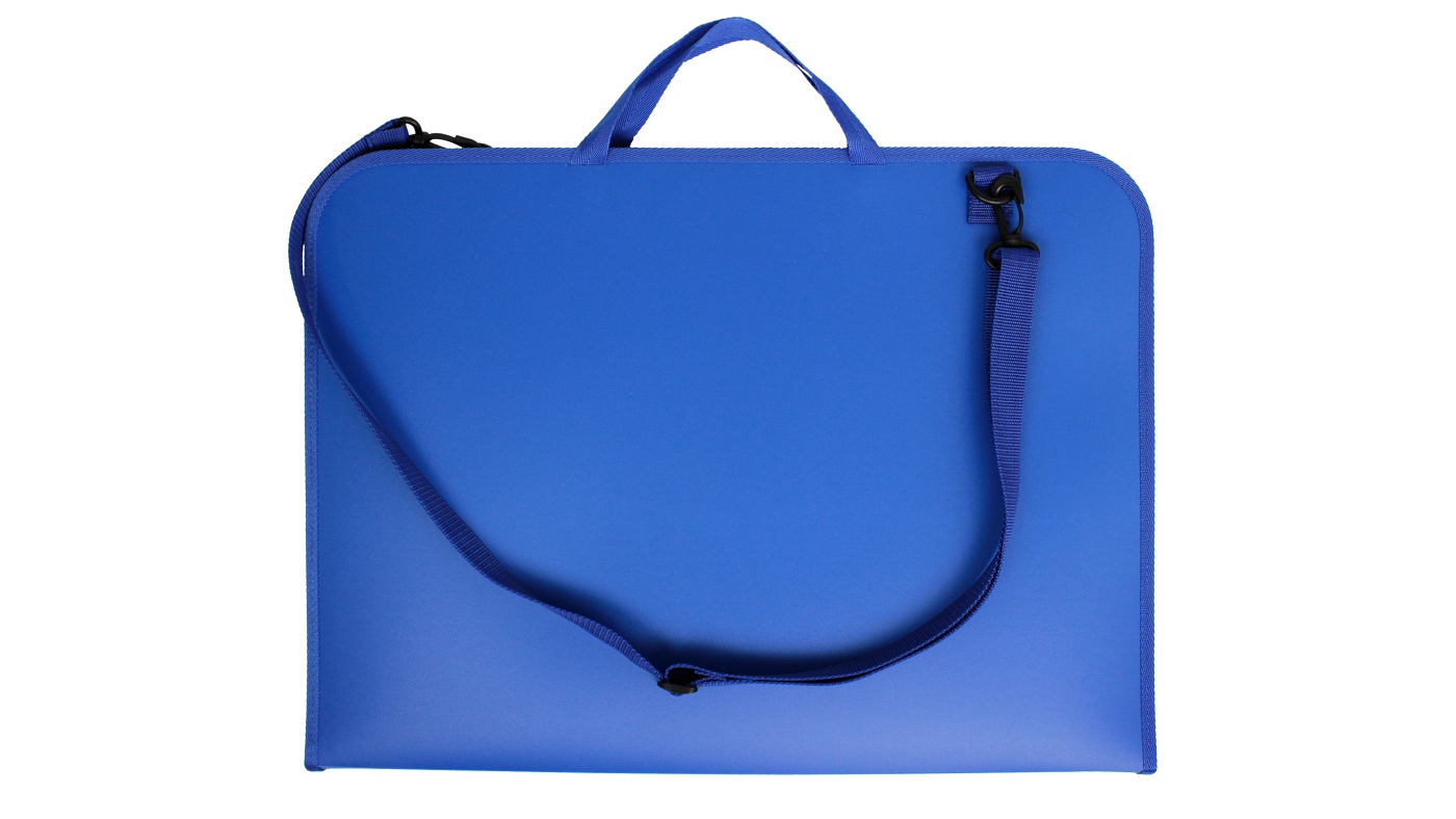 Teczka wykonana ze sztywnego tworzywa PP w kolorze niebieskim.