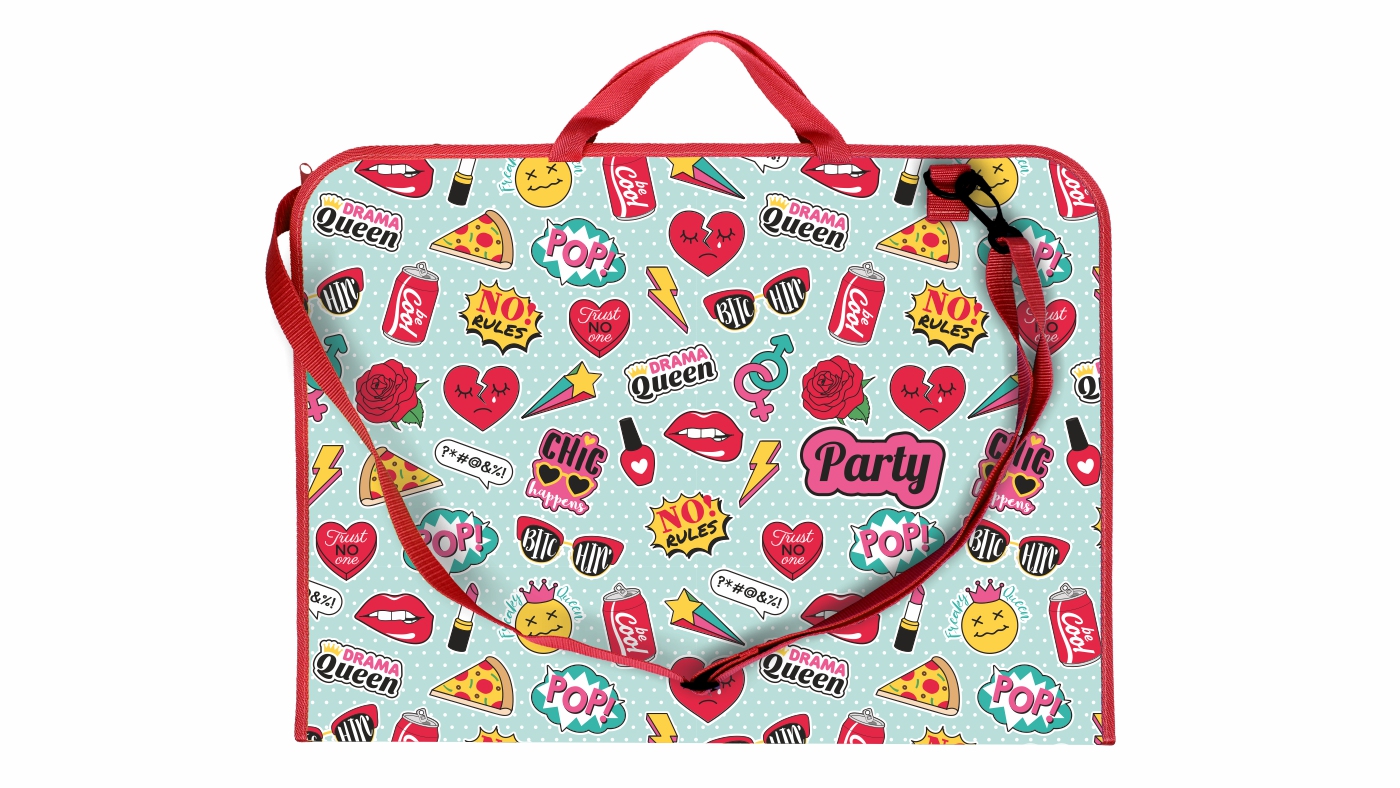 Teczka wykonana ze sztywnego tworzywa PP z ozdobnym nadrukiem oraz obszyciem w kotrastowym kolorze.