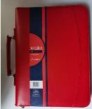 Materiał: skóra ekologiczna gumka na długopis kieszonka na wizytówkę posiada ring kalkulator w komplecie (wyjmowany) kieszenie na dokumenty zasuwana kieszonka klips z notesem w linię zamykana na suwak rączka do trzymania