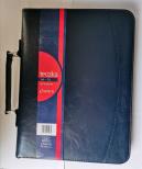Materiał: skóra ekologiczna gumka na długopis kieszonka na wizytówkę posiada ring kalkulator w komplecie (wyjmowany) kieszenie na dokumenty zasuwana kieszonka klips z notesem w linię zamykana na suwak rączka do trzymania