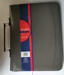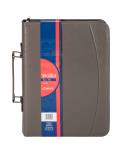 Materiał: skóra ekologiczna gumka na długopis kieszonka na wizytówkę posiada ring kalkulator w komplecie (wyjmowany) kieszenie na dokumenty zasuwana kieszonka klips z notesem w linię zamykana na suwak rączka do trzymania