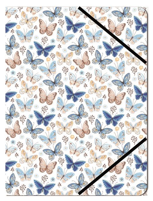 Ozdobna teczka na dokumenty formatu A4, zamykana na gumkę. Dostępna w czterech wzorach.