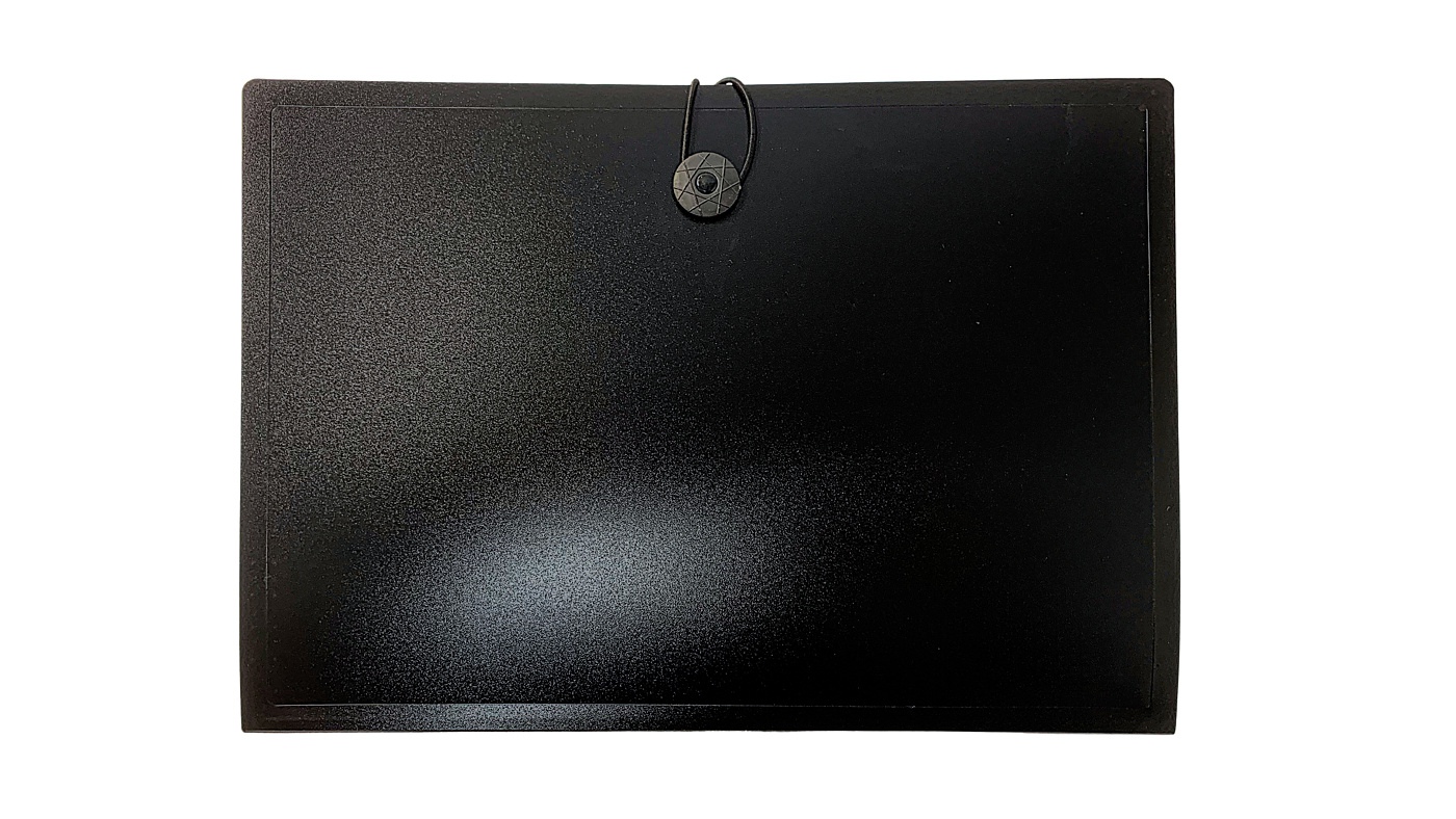 Teczka harmonijkowa wykonana ze sztywnego tworzywa PP w kolorze czarnym.