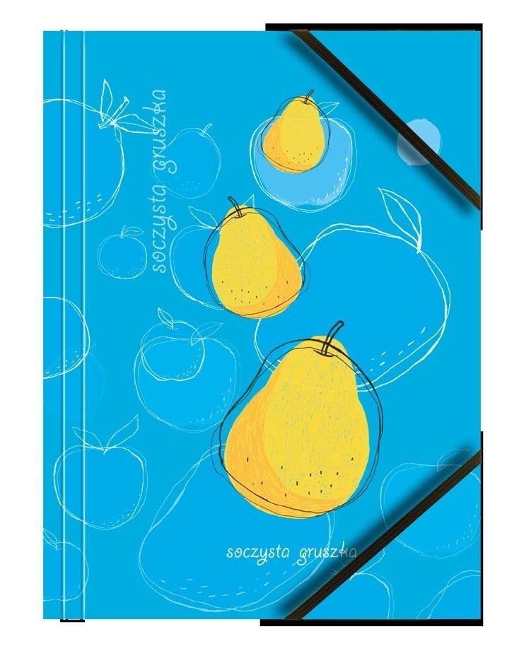 Teczka kartonowa z grafiką i gumką narożną, lakierowana, format A4. Jedna grafika - soczysta gruszka. Gramatura: 350g. Rozmiar: 320mm/240mm