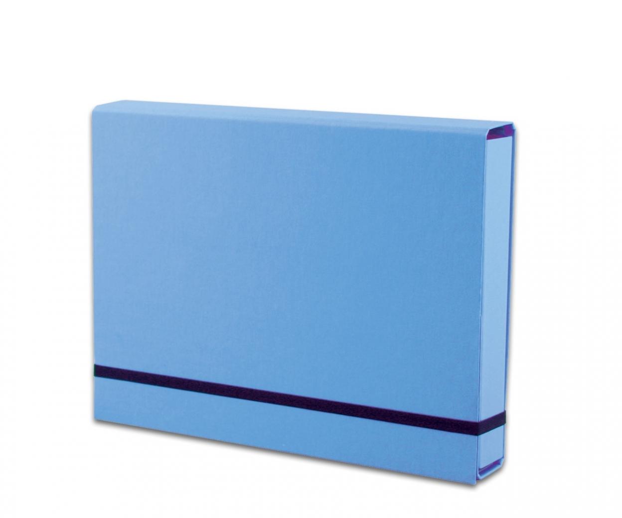Wykonana z tektury 1,7mm, nitowane boki z okleinowanymi krawędziami zapinana na płaską gumkę 10 mm. Okleina Ecoline mat.. Wymiary w cm; 32X23,5X4,5