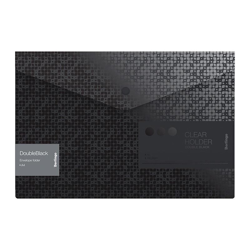 Teczka kopertowa z zamknięciem, seria Berlingo DoubleBlack A4 do przechowywania i przenoszenia dokumentów. Wykonana z wysokiej jakości polipropylenu 180 mikronów o matowej fakturze skórki pomarańczy, wolnej od odcisków palców i drobnych zadrapań. Rozmiar teczki to 330*235 mm, orientacja jest pozioma. Pojemność teczki- 120 arkuszy A-4. Teczka jest szczelnie zamykana na fioletowy guzik typu klip, chroniący dokumenty przed uszkodzeniem i zabrudzeniem.