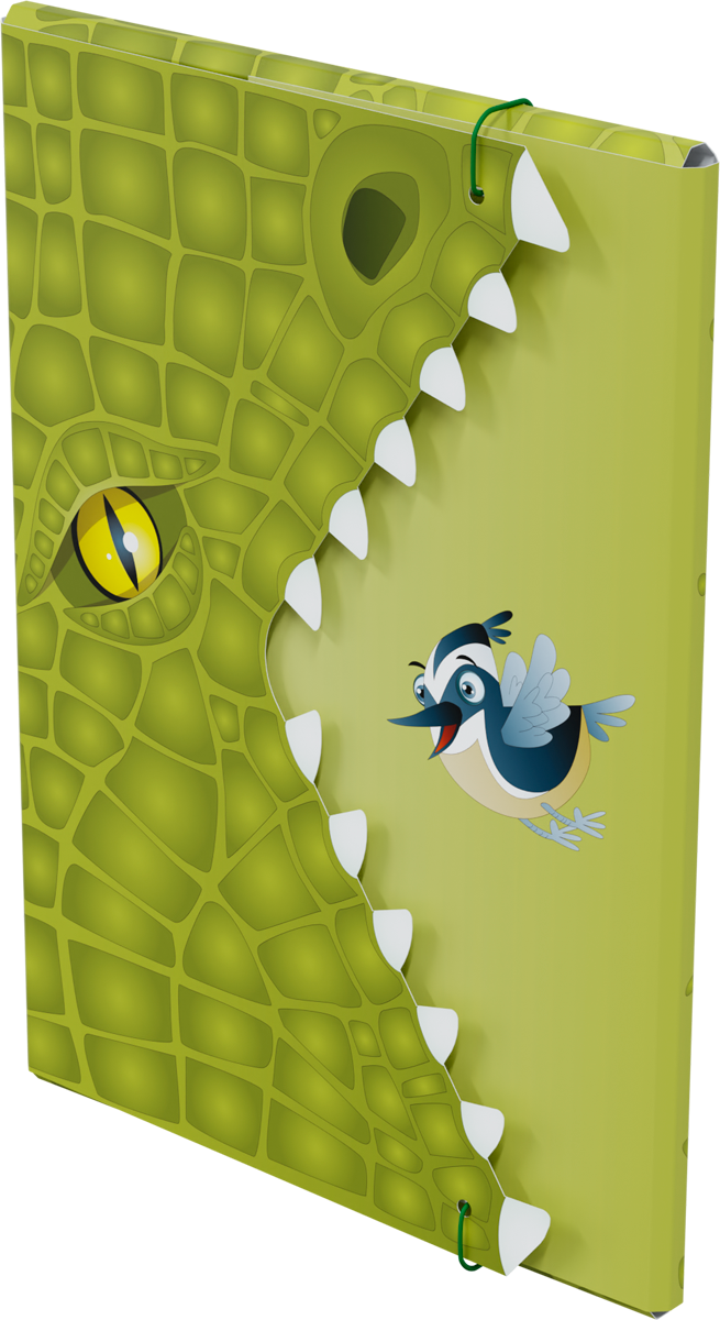Krokodyl jest bardzo silnym zwierzęciem, jest drapieżnikiem. Mogłoby się wydawać, że ten malutki ptaszek wcale nie ma z nim szans. Ale czy na pewno? To, że ktoś jest wielki nie oznacza, że wszystko może, że niczego się nie boi, że sprosta każdemu zadaniu. A gdyby tak spojrzeć trochę bardziej metaforycznie na teczkę. Ja to ten mały ptaszek, krokodyl to wyzwanie, czyli coś co muszę zrobić, ale strasznie mnie to przeraża. Zupełnie nie wiem jak mam się zabrać do tego tematu. Bo co ja mogę? Jestem tylko małym, nic nie potrafiącym ptaszkiem! A teraz spójrzmy na to inaczej. Krokodyl, ten wielki zły zwierzak ma szeroko otwarta paszczę z tymi ogromnymi wielkimi zębami, a ptaszek jest taki uśmiechnięty jakby właśnie wygrał na loterii! Czysta abstrakcja? A może jednak coś w tym jest? Są takie chwile w życiu, gdy myślimy że już nie damy rady, że nie możemy niczego osiągnąć, że do niczego się nie nadajemy. Każdy może mieć chwilę słabości. To zupełnie naturalne. Ale życie to nie bajka, to ciągłe wyzwania. To jak je przeżyjemy zależy od nas, od naszego nastawienia. Może zamiast mówić: to się nie uda, lepiej pomyśleć: dam radę, a przynajmniej spróbuję!. Oczywiście nie jest to łatwe zadanie, ale jeżeli coś jest trudne do osiągnięcia, to później kiedy się już z tym uporamy, nasza satysfakcja jest o wiele większa! Zamiast od razu dawać za wygraną, warto jest przynajmniej spróbować uporać się z danym zadaniem czy problemem. Niech ten uśmiechnięty ptaszek będzie motywacją do działania! Niech ta teczka pomoże uporządkować ważne dokumenty. Niech ten krokodyl ucieka w siną dal i zabierze ze sobą zmartwienia. Jedna teczka, niby tylko teczka, a jednak tak bardzo może dać do myślenia i być może zachęcić do działania! Powodzenia!