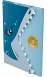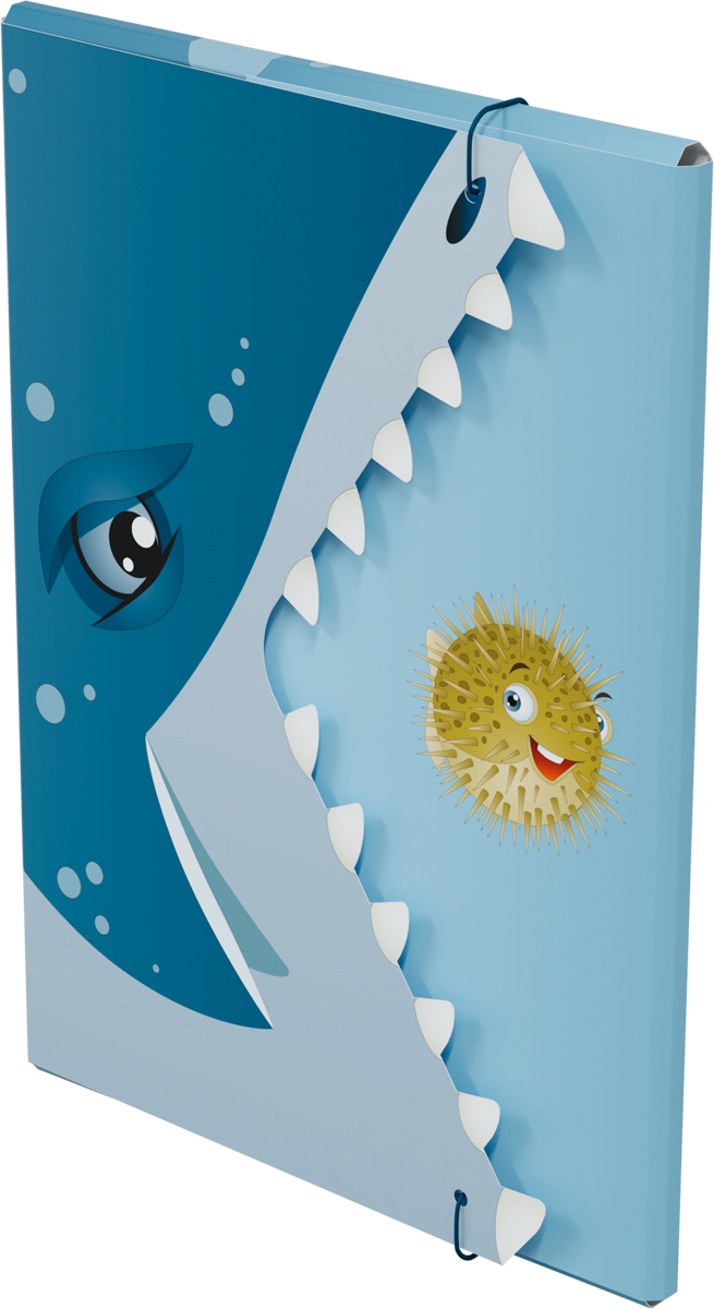 Rekin jest bardzo silnym zwierzęciem, jest drapieżnikiem. Mogłoby się wydawać, że ta malutka rybka wcale nie ma z nim szans. Ale czy na pewno? To, że ktoś jest wielki nie oznacza, że wszystko może, że niczego się nie boi, że sprosta każdemu zadaniu. A gdyby tak spojrzeć trochę bardziej metaforycznie na teczkę. Ja to ta mała rybka, rekin to wyzwanie, czyli coś co muszę zrobić, ale strasznie mnie to przeraża. Zupełnie nie wiem jak mam się zabrać do tego tematu. Bo co ja mogę? Jestem tylko małą, nic nie potrafiącą rybką! A teraz spójrzmy na to inaczej. Rekin, ten wielki zły zwierzak ma szeroko otwartą paszczę z tymi ogromnymi wielkimi zębami, a rybka jest taka uśmiechnięta jakby właśnie wygrała na loterii! Czysta abstrakcja? A może jednak coś w tym jest? Są takie chwile w życiu, gdy myślimy że już nie damy rady, że nie możemy niczego osiągnąć, że do niczego się nie nadajemy. Każdy może mieć chwilę słabości. To zupełnie naturalne. Ale życie to nie bajka, to ciągłe wyzwania. To jak je przeżyjemy zależy od nas, od naszego nastawienia. Może zamiast mówić: to się nie uda, lepiej pomyśleć: dam radę, a przynajmniej spróbuję!. Oczywiście nie jest to łatwe zadanie, ale jeżeli coś jest trudne do osiągnięcia, to później kiedy się już z tym uporamy, nasza satysfakcja jest o wiele większa! Zamiast od razu dawać za wygraną, warto jest przynajmniej spróbować uporać się z danym zadaniem czy problemem. Niech ta uśmiechnięta rybka będzie motywacją do działania! Niech ta teczka pomoże uporządkować ważne dokumenty. Niech ten rekin odpłynie w siną dal i zabierze ze sobą zmartwienia. Jedna teczka, niby tylko teczka, a jednak tak bardzo może dać do myślenia i być może zachęcić do działania! Powodzenia!