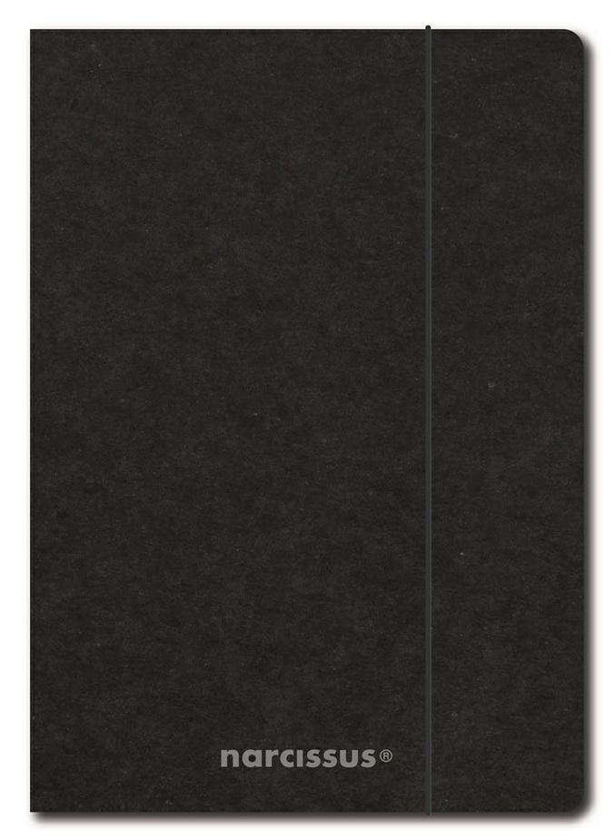 Teczka z serii Eco Black marki Narcissus. Uniwersalny format A4, zapięcie na gumkę. Wykonana z tektury barwionej na czarno w masie - kolor nie doznaje uszczerbku nawet w wyniku uszkodzenia poprzez zagniecenie czy naderwanie jego fragmentu. Logo jest w kolorze srebrnym.